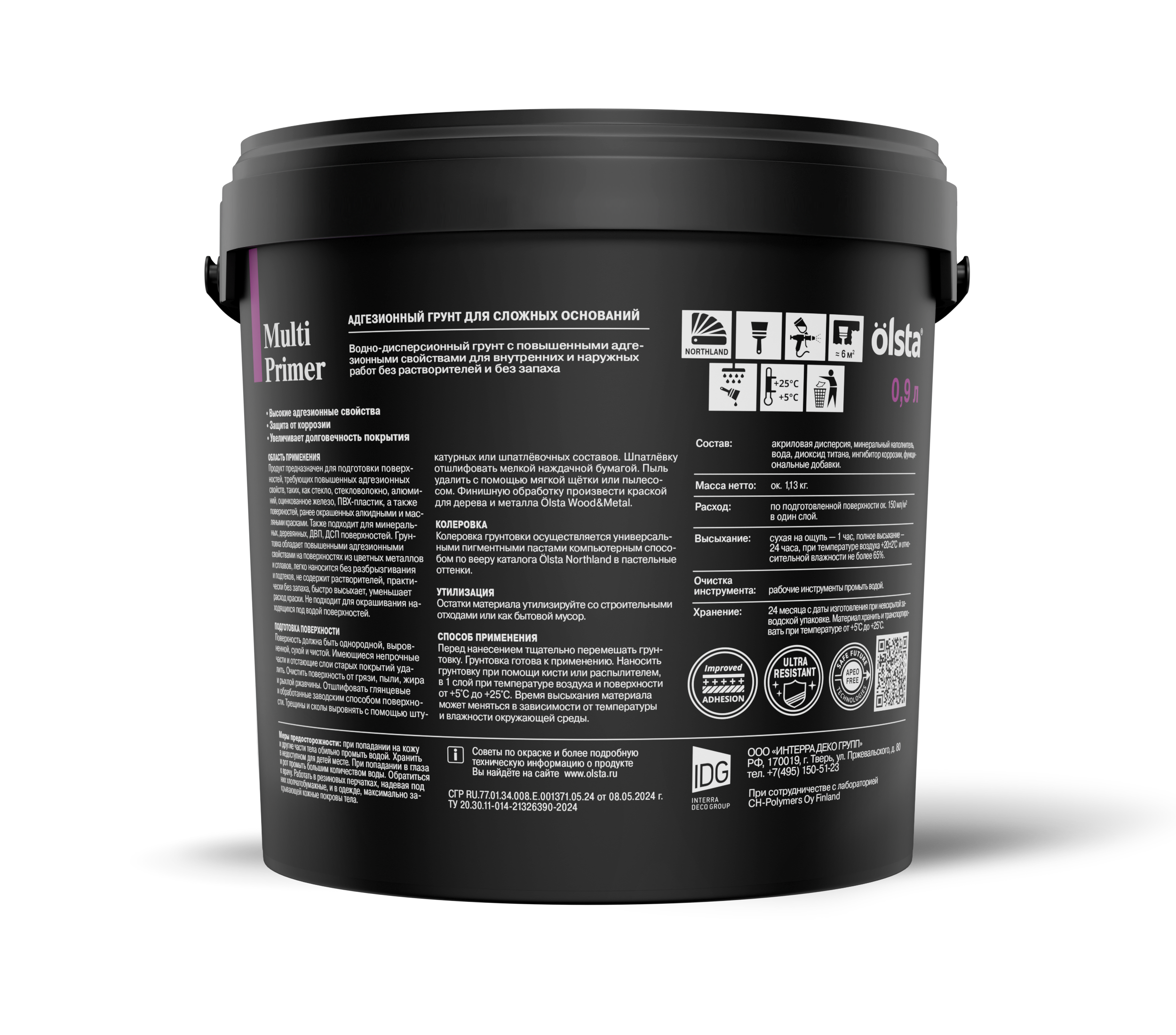 Адгезионный грунт MULTI PRIMER - Грунт для подготовки поверхностей, требующих повышенных адгезионных свойств, таких, как стекло, стекловолокно, ПВХ-пластик, алюминий, оцинкованное железо, а также поверхности, ранее окрашенные алкидными и масляными красками. Также подходит для минеральных, деревянных, ДВП, ДСП поверхностей. от бренда OLSTA с доставкой по России!