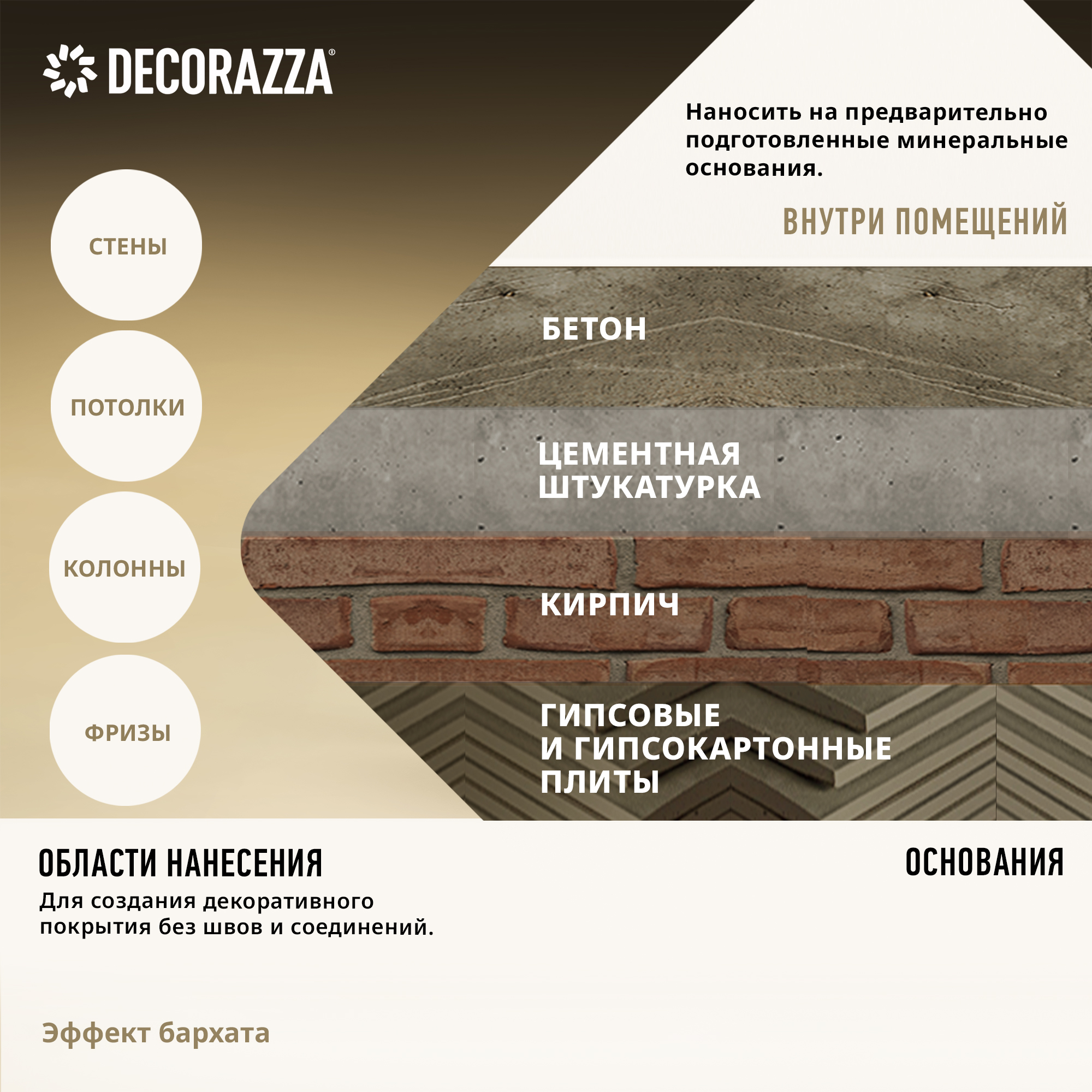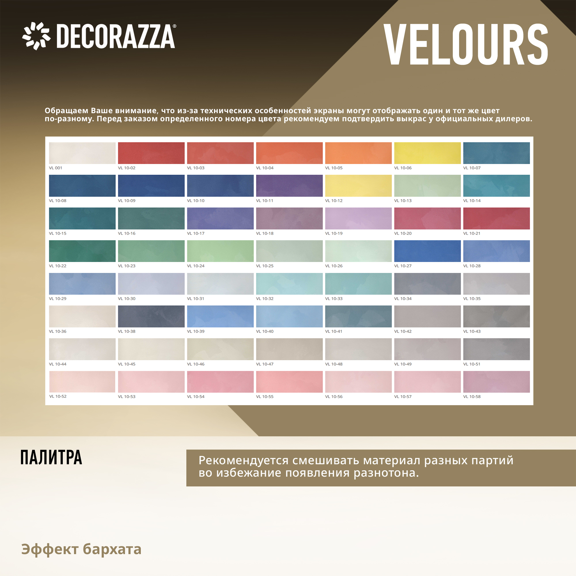 Декоративное покрытие VELOURS - Декоративное покрытие для формирования эффекта гладкой или драпированной бархатной поверхности от бренда Decorazza с доставкой по России!
