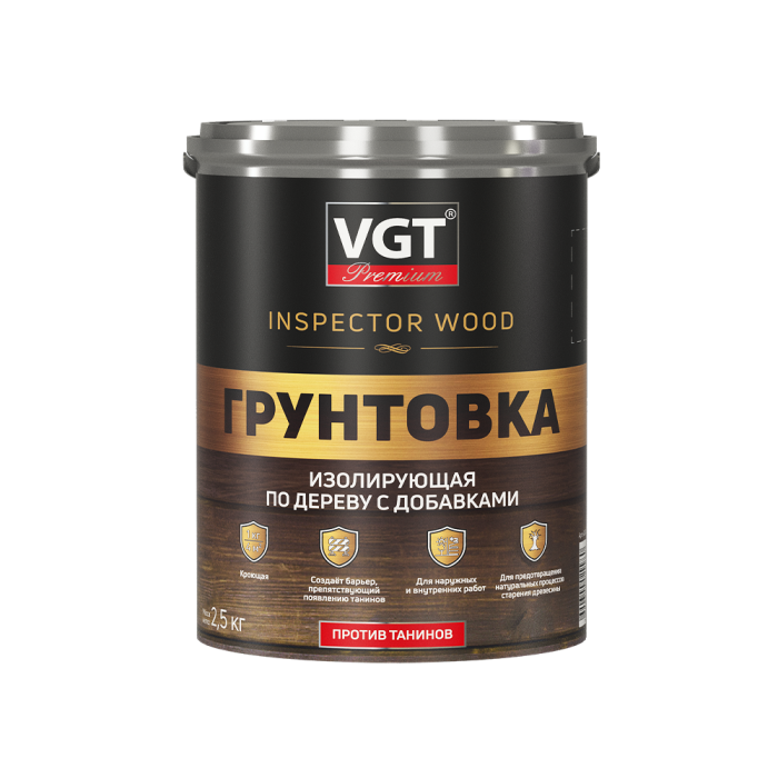 Изолирующий грунт по дереву VGT - Грунтовка изолирующая по дереву с добавками против танинов. улучшает адгезию к последующим окрасочным слоям; создает барьер, препятствующий появлению танинов; для наружных и внутренних работ ; для предотвращения натуральных процессов старения. от бренда VGT Premium с доставкой по России!