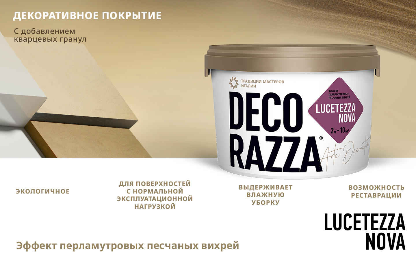 Краска декоративная LUCETEZZA ALLUMINIO - Декоративное покрытие с легкой песчаной структурой от бренда Decorazza с доставкой по России!