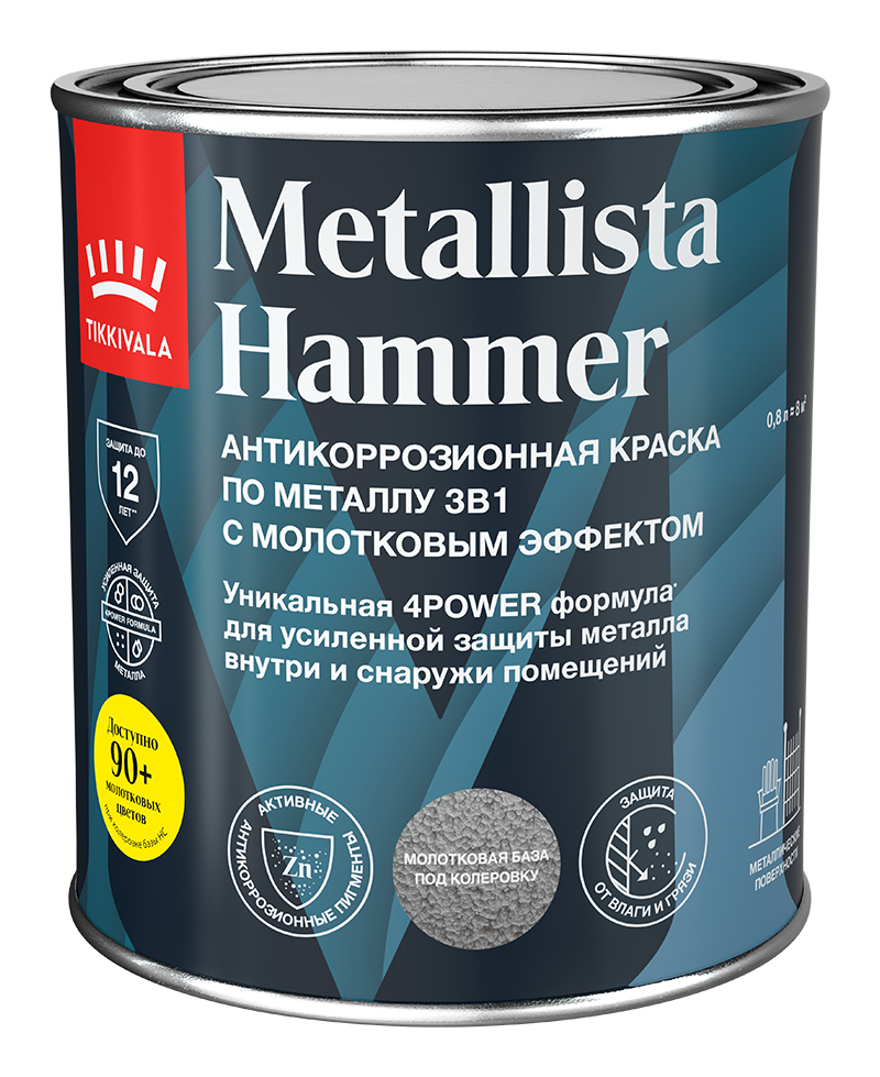 Молотковая краска по ржавчине METALLISTA HAMMER - Молотковая краска Tikkurila METALLISTA HAMMER — это уникальное покрытие, специально разработанное для обработки металлических поверхностей с видимыми признаками коррозии. Её главное преимущество — способность эффективно скрывать следы ржавчины, обеспечивая надежную антикоррозионную защиту и долговечность конструкции. Благодаря характерному молотковому эффекту, эта краска не только выполняет декоративную функцию, но и придает изделиям современный и оригинальный вид. Она идеально подходит как для внутренних, так и для наружных работ, обеспечивая стойкость к атмосферным воздействиям и механическим нагрузкам. Tikkurila METALLISTA HAMMER легко наносится, быстро высыхает и образует прочную, эластичную плёнку, способную выдерживать экстремальные условия эксплуатации. от бренда Tikkurila с доставкой по России!