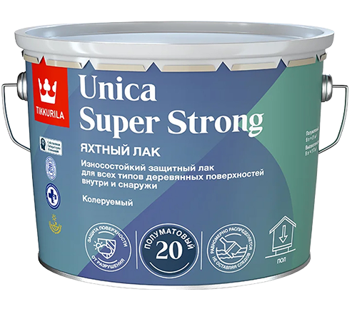 Яхтный лак Unica Super Strong - Лак для широкого спектра применений, позволяя защитить и украсить деревянные поверхности в различных условиях. Он идеально подходит для лакировки изделий как внутри, так и снаружи помещений, обеспечивая эффективную защиту от атмосферных воздействий, механических повреждений и химических веществ от бренда Tikkivala с доставкой по России!