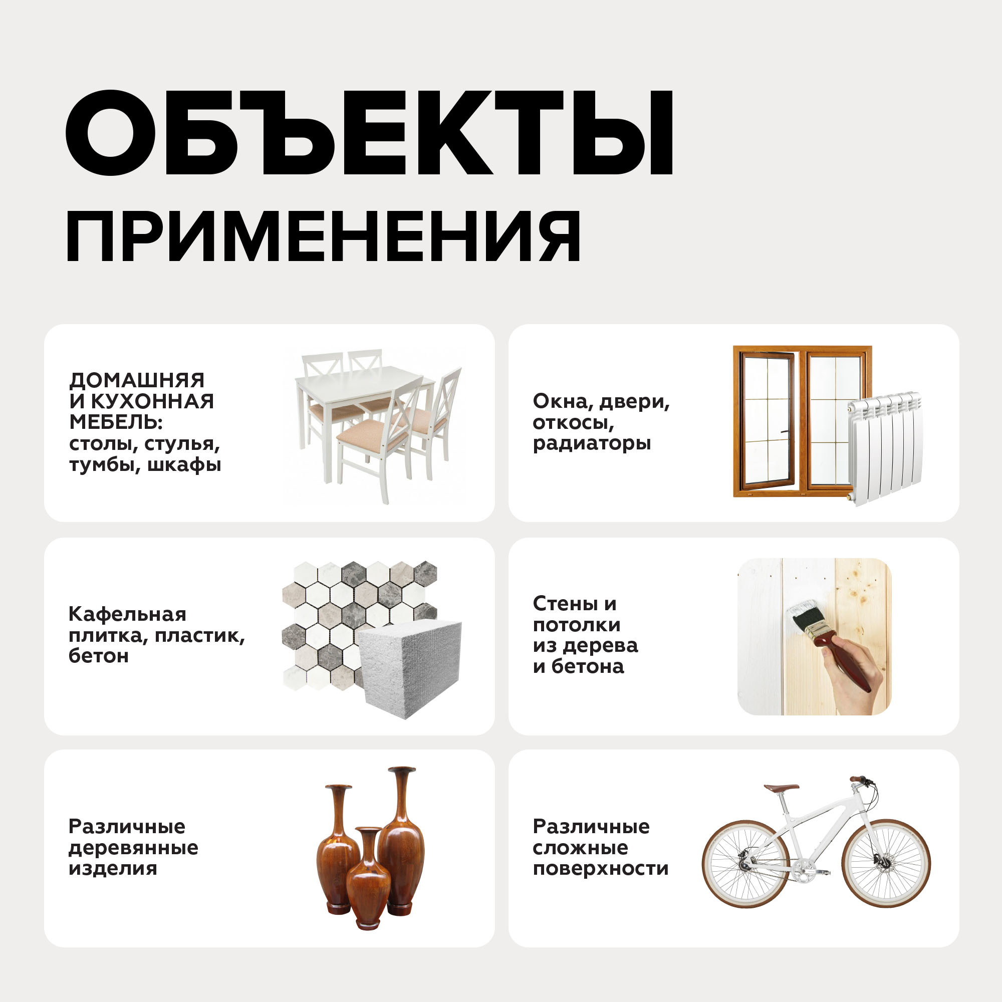 Краска предназначена для окраски предварительно подготовленных поверхностей из древесины: мебели, предметов интерьера и прочих деревянных объектов, эксплуатируемых внутри помещений, стен и потолков, облицовочных материалов, дверей, и т.п.. Подходит для поверхностей, не подверженных интенсивным нагрузкам. Может применяться как интерьерная краска умеренной износостойкости для окраски фанеры, плит OSB, а также различных